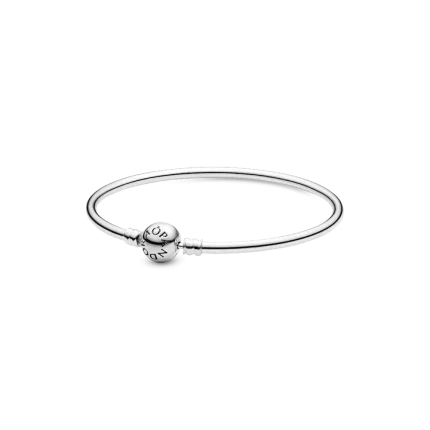 Sleek and elegant, this Pandora Moments bangle is simply beautiful. Crafted in polished sterling silver, it is finished with an