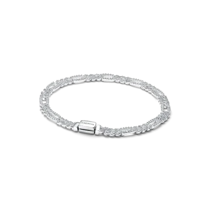 Add sparkle and romance to your charms with this stunning version of Pandora’s iconic snake chain bracelet. Hand-finished in sterling