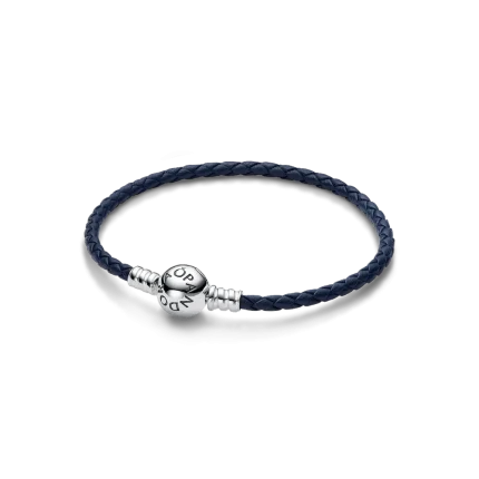 Pandora Moments Round Clasp Blue Braided Leather Bracelet
