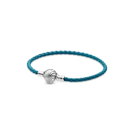 Pandora Moments Seashell Clasp Turquoise Braided Leather Bracelet