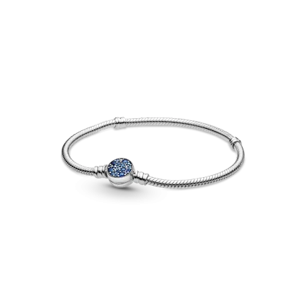 Pandora Moments Sparkling Blue Disc Clasp Snake Chain Bracelet