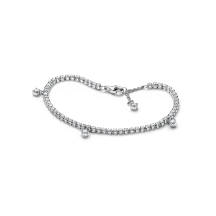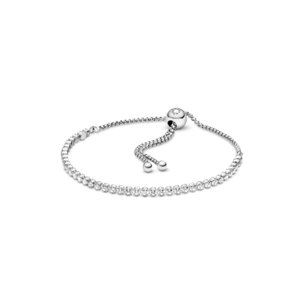 Tennis anyone? Upgrade your style game with Pandora’s modern twist on the timeless tennis bracelet. Crafted in rhodium-plated sterling silver,
