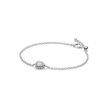 Shine brighter than ever when you wear the Sparkling Pear Halo Chain Bracelet. This bracelet features a striking pear-shaped stone
