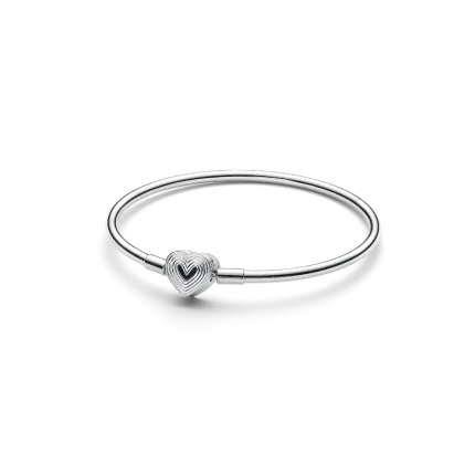 Go for sleek simplicity with the Radiating Heart Clasp Bangle. This sterling silver bangle has a heart-shaped clasp with a