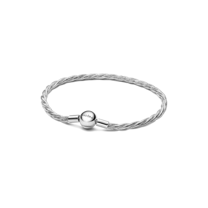 A sophisticated spin on the classic friendship bracelet. Hand-finished in polished sterling silver, it features two movable end caps –