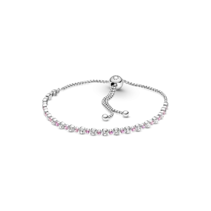 Add a sophisticated pink note to your look with this sparkling sterling silver slider bracelet. Hand-finished with two tones of