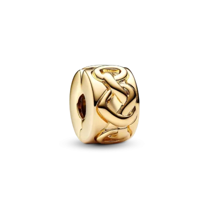 Our simple yet striking Pandora Moments clip charm is decorated with a row of knotted hearts. The design features a