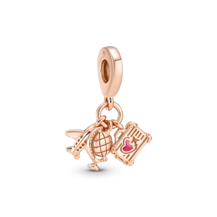 Airplane, Globe & Suitcase Triple Dangle Charm