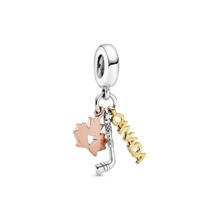 Canada, Maple Leaf & Hockey Stick Dangle Charm