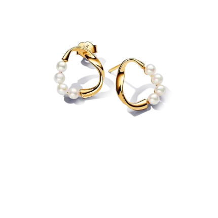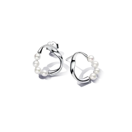 Organically Shaped Circle & Treated Freshwater Cultured Pearls Stud Earrings