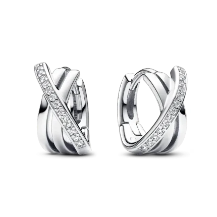 Embrace modern elegance with our Crossover Pavé Hoop Earrings. Crafted in sterling silver, these hoops feature a chic X-shaped profile