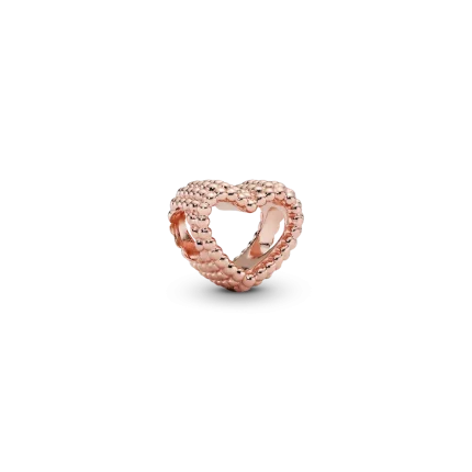 Feel the love with our 14k rose gold-plated Beaded Open Heart Charm, perfect for adding depth and dimension to a