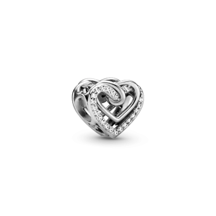 Gift a symbol of your love with the Sparkling Entwined Hearts Charm. Hand-finished in sterling silver, this design includes intertwining