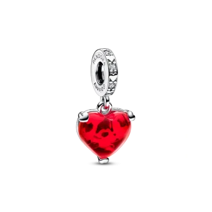 Disney Mickey & Minnie Mouse Kiss Red Murano Glass Dangle Charm