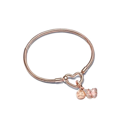Embrace the change with our Pink Butterfly & Quote Double Dangle Charm. Hand-finished in 14k rose gold plating, it features