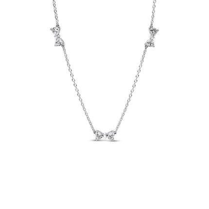 Some ties never come undone. Crafted in sterling silver, this necklace features bows fixed along its chain. Detailed with sparkling