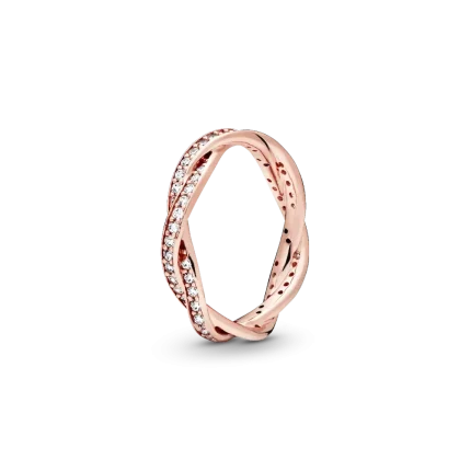 Add contemporary allure to your look with this Sparkling Twisted Lines Ring, plated with 14k rose gold. The delicate, double-layered