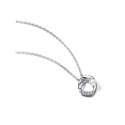 Organically Shaped Pavé Circle & Treated Freshwater Cultured Pearl Collier Necklace