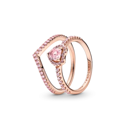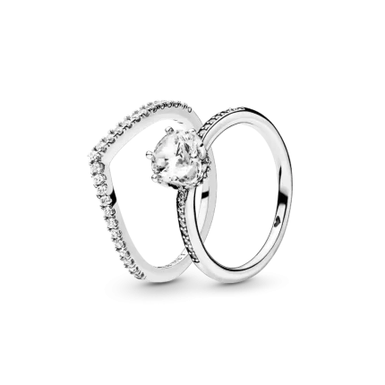 Shimmering Solitaire Wishbone Stacking Ring Set