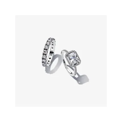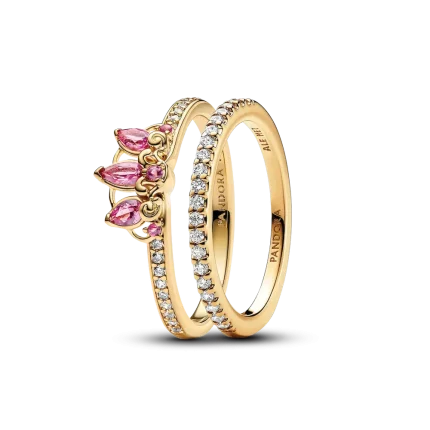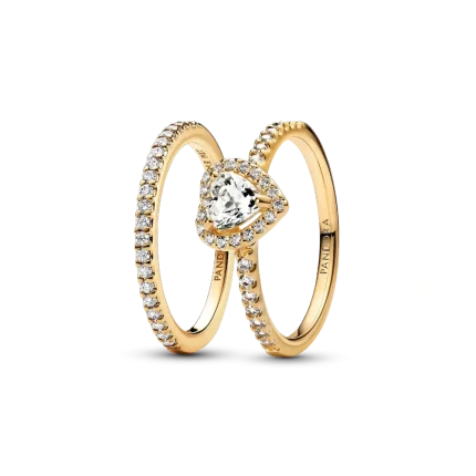 Playful Love Golden Elevated Heart Sparkling Band Ring Set