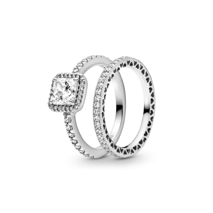 Timeless glamour meets dazzling elegance in this vintage-inspired ring set. Stun with sophistication with the Square Sparkle Halo Ring featuring