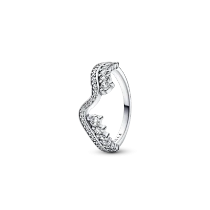 Hand-finished in sterling silver, our Sparkling Asymmetric Wave Ring features a wave-inspired pavé band accented with a split row of