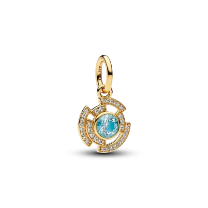 Power up your collection. This 14k gold-plated charm channels Iron Man’s arc reactor, with pavé-set stones on one side and