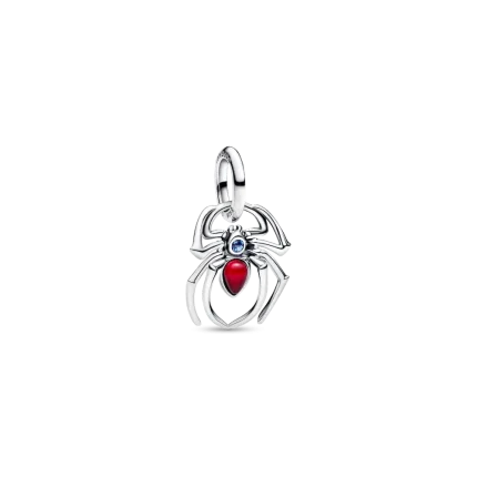 Swing into style with the sterling silver Marvel Spiderman Dangle Charm. Featuring blue and fuchsia man-made crystals, its openwork design