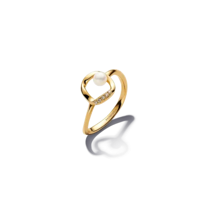 Organically Shaped Pavé Circle & Treated Freshwater Cultured Pearl Ring