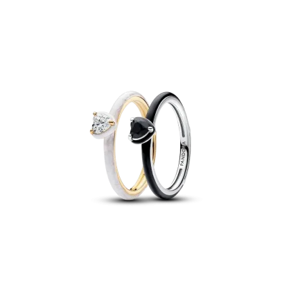 Black & White Chakra Heart Rings Set