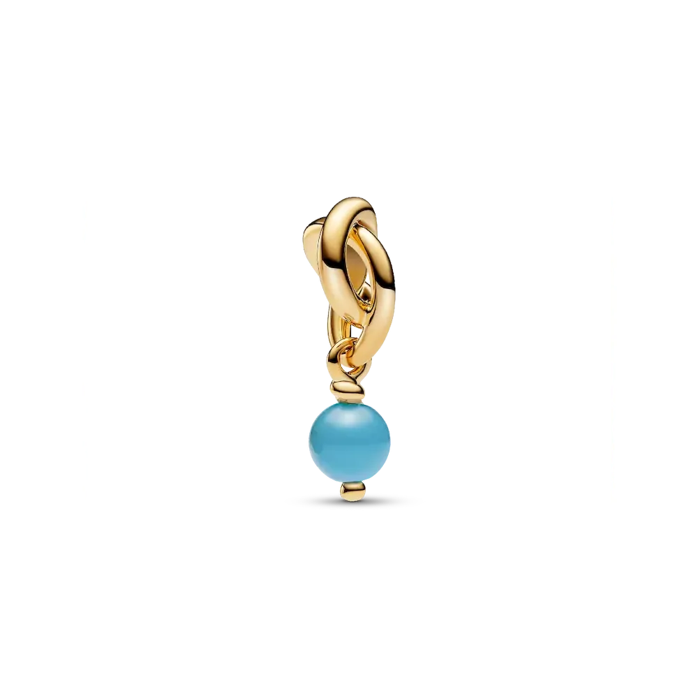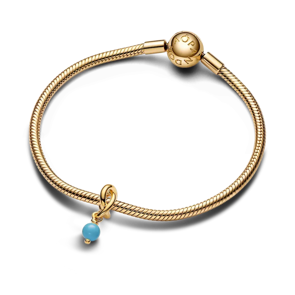 For the month of December, turquoise blue. Inspired by the positive power each color brings, our Eternity Circle dangle charm gets a glow up in 14k gold-plating with a new faceted stone cut design and intricate triple knotted circle above. With its twisted infinity motif and bright pop of blue, December’s symbolic charm is perfectly styled on a 14k gold-plated chain necklace for a look that’s as beautiful as the birthday it celebrates.