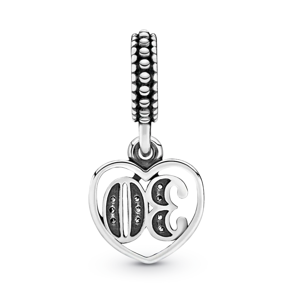Celebrate a 30th anniversary or someone who’s just turned thirty with this heart-shaped dangle charm in sterling silver. The keepsake style is suspended from a beaded bail and detailed with glittering cubic zirconia. It’s made for Pandora Moments bracelets but looks equally cool worn as a necklace pendant.