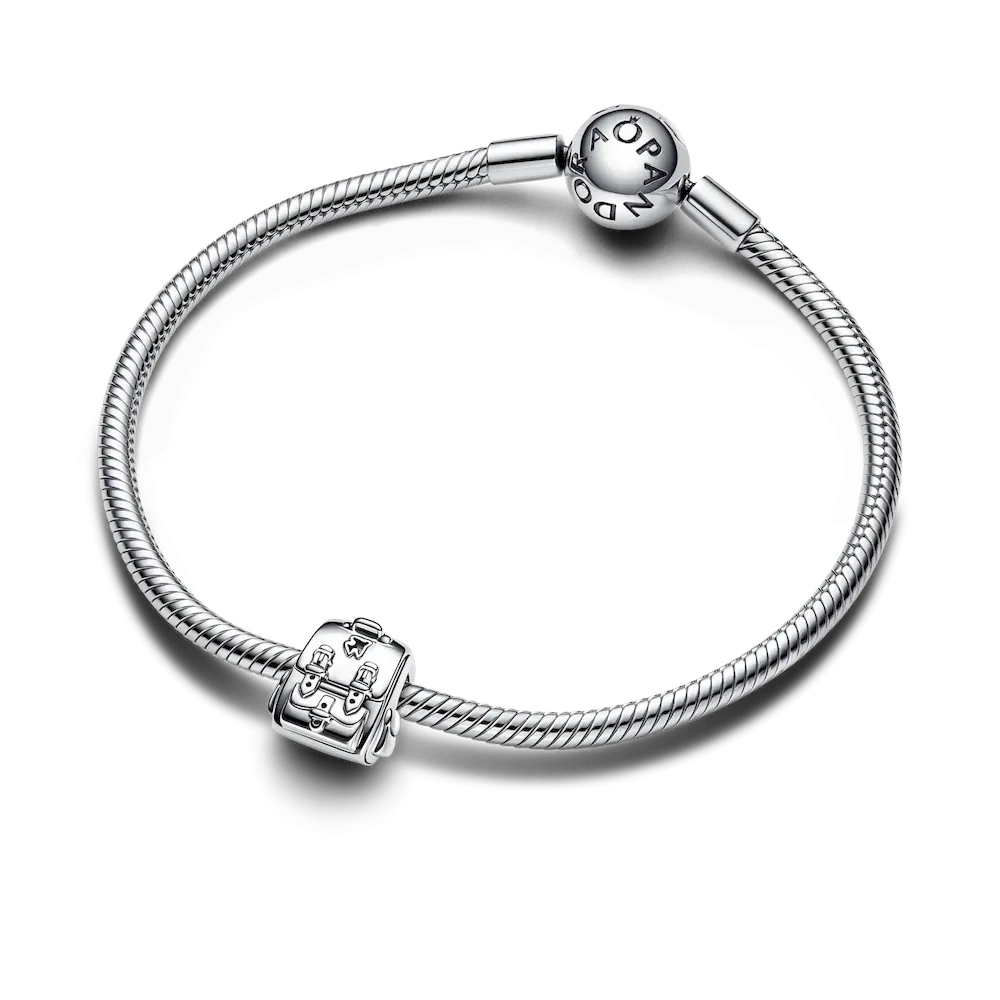 Heed the call for adventure with the Adventure Backpack Charm. A scaled-down sterling silver backpack features realistic details including wraparound straps, handle, buckles and pocket. An airplane symbol is imprinted on the front and a message is engraved on the underside: