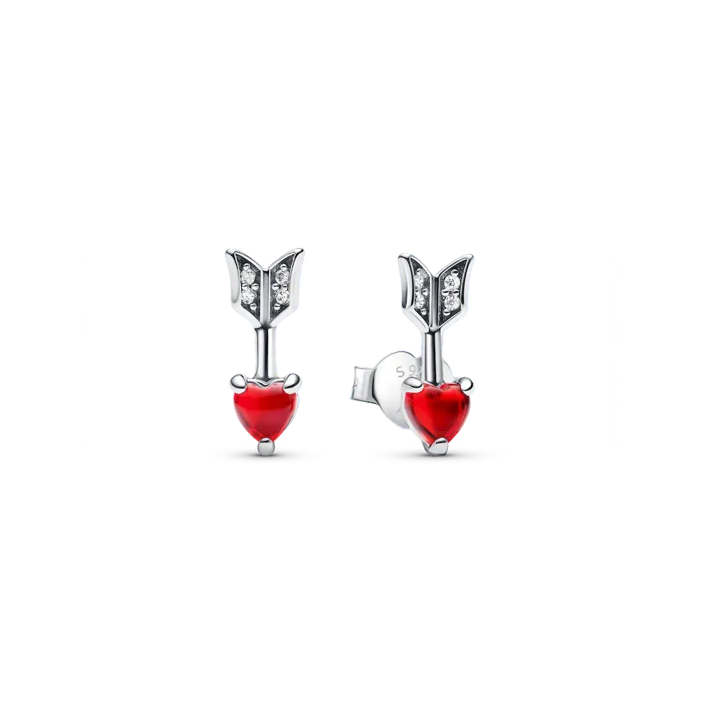 Be hit by Cupid’s arrow all day every day with these romantic stud earrings. Crafted from sterling silver, each earring features four bead-set cubic zirconia, adding a touch of sparkle. A heart-shaped Murano glass motif at the tip creates the head of the arrow. Perfect for everyday wear or as a gift for your Valentine, celebrate love with earrings that speak from the heart.