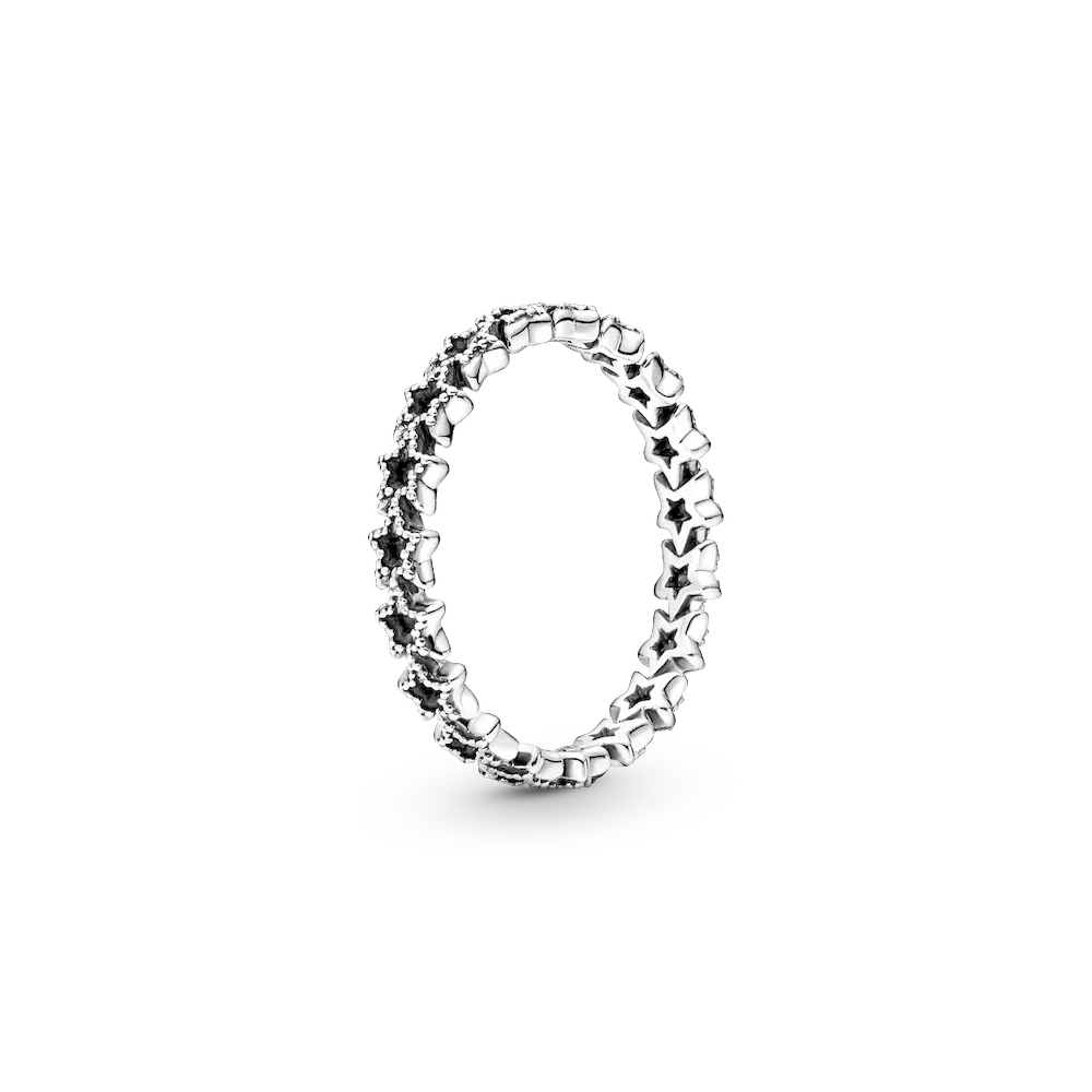 Bring starry sparkle to your outfits with the Band of Asymmetric Stars Ring. Inspired by celestial beauty, the sterling silver ring features a band of asymmetric openwork stars with delicate milgrain details. The show-stopping design looks equally beautiful worn on its own or layered with other Pandora rings. A classic and sophisticated addition to any woman’s wardrobe. Alternatively, surprise someone special with this piece as a token of your love.