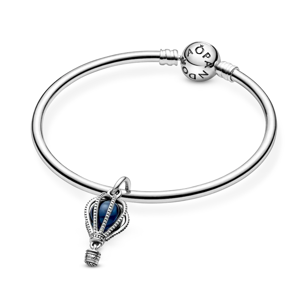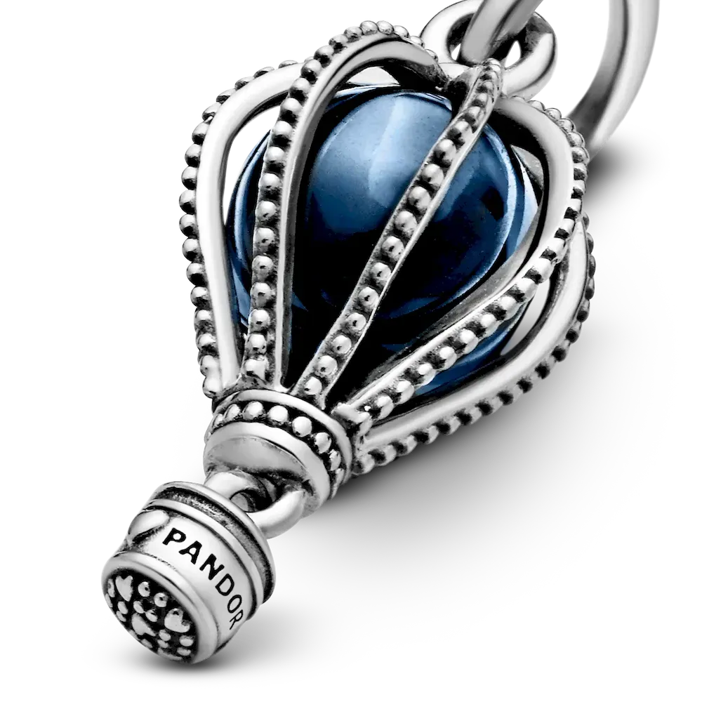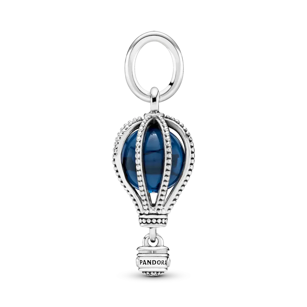 Wear the sterling silver hot air balloon charm as a symbol of your travel story or dreams of faraway places. The charm features a blue crystal balloon within beaded tethers and a dangling basket detailed with the Pandora logo and hearts. Wear it on a necklace, alone or with other favorite dangle charms or add it to a travel-inspired bracelet styling as a reminder of where you’ve been and where you’re headed.