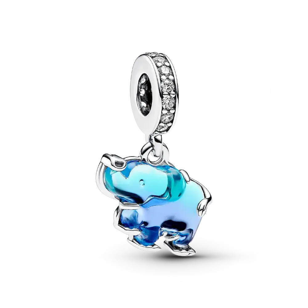 Blue Murano Glass Elephant Dangle Charm