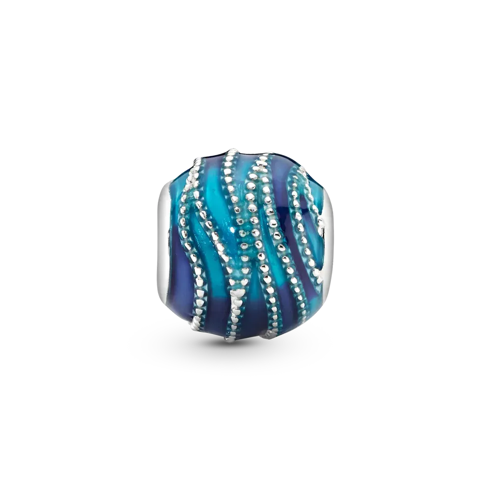 Channel the healing power of water with this ball charm. Taking its cue from ripples of water, the sterling silver design features hand-applied shaded blue enamel. Beaded lines along its surface create a wave-like effect that makes it a refreshing addition to your Pandora Moments bracelet. You can also wear it on a necklace chain.