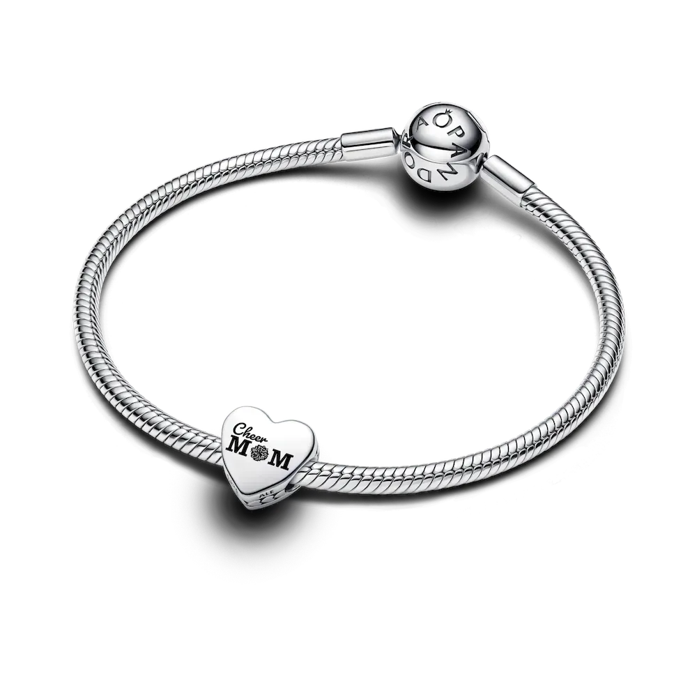 Show your cheerleading pride with this sterling silver Engravable Cheer Mom Heart Charm, featuring a row of polished hearts around the edges. Engraved with