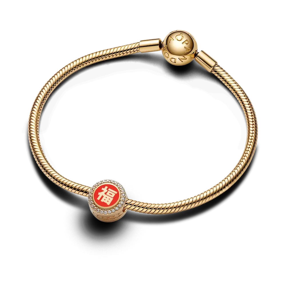 Embrace the spirit of good fortune and happiness with this sterling silver Fortune & Prosperity Charm. Featuring a row of pavé cubic zirconia around the edges, this charm is engraved with the Chinese character