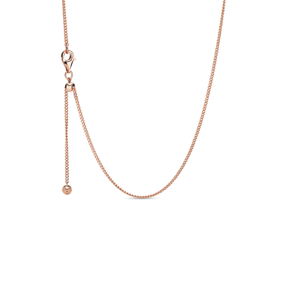 No jewellery collection is complete without a simple versatile necklace that can be worn by itself or accessorised with your favourite pendants. One of the most essential pieces for any wardrobe, our 14k rose gold-plated Curb Chain Necklace features a sliding clasp, flat interlocking chain links and a dangling curb chain. Wear the slider necklace on its own or layer it for a fashion-forward look and adjust to suit your desired length.