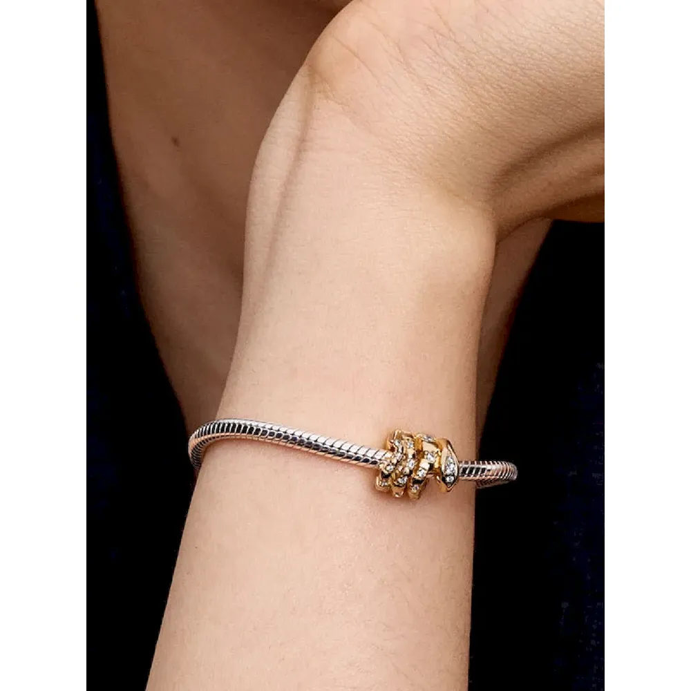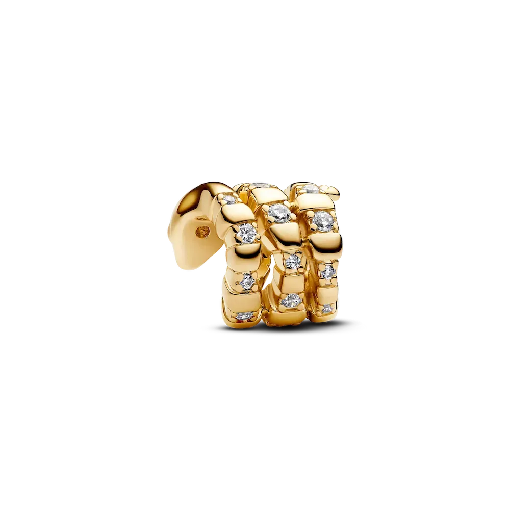 Celebrate the Year of the Snake with our 14k gold-plated charm. This curled snake design features a scaled pattern, encrusted with 28 bead-set and 3 micro cubic zirconia, plus microbead eyes. Wear yours as a symbol of the Chinese zodiac animal for 2025, an emblem of intelligence and transformation.