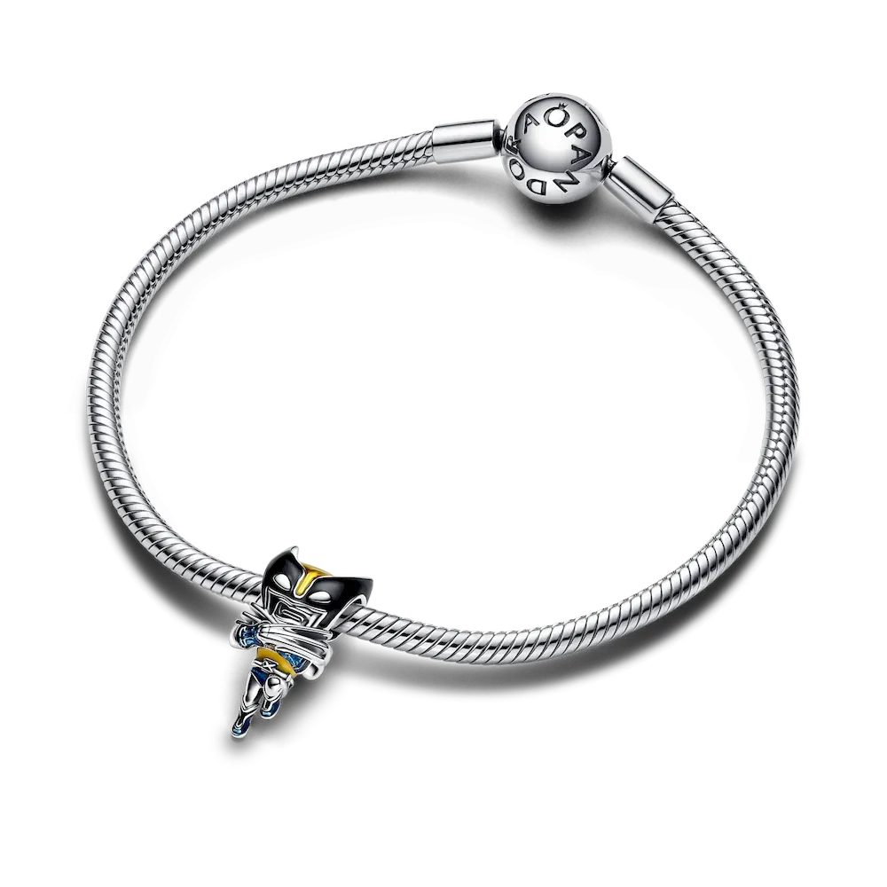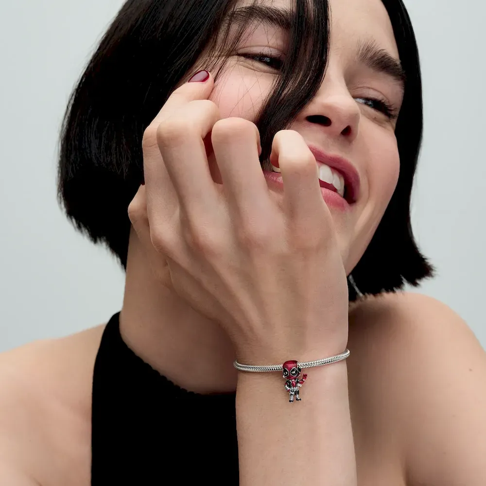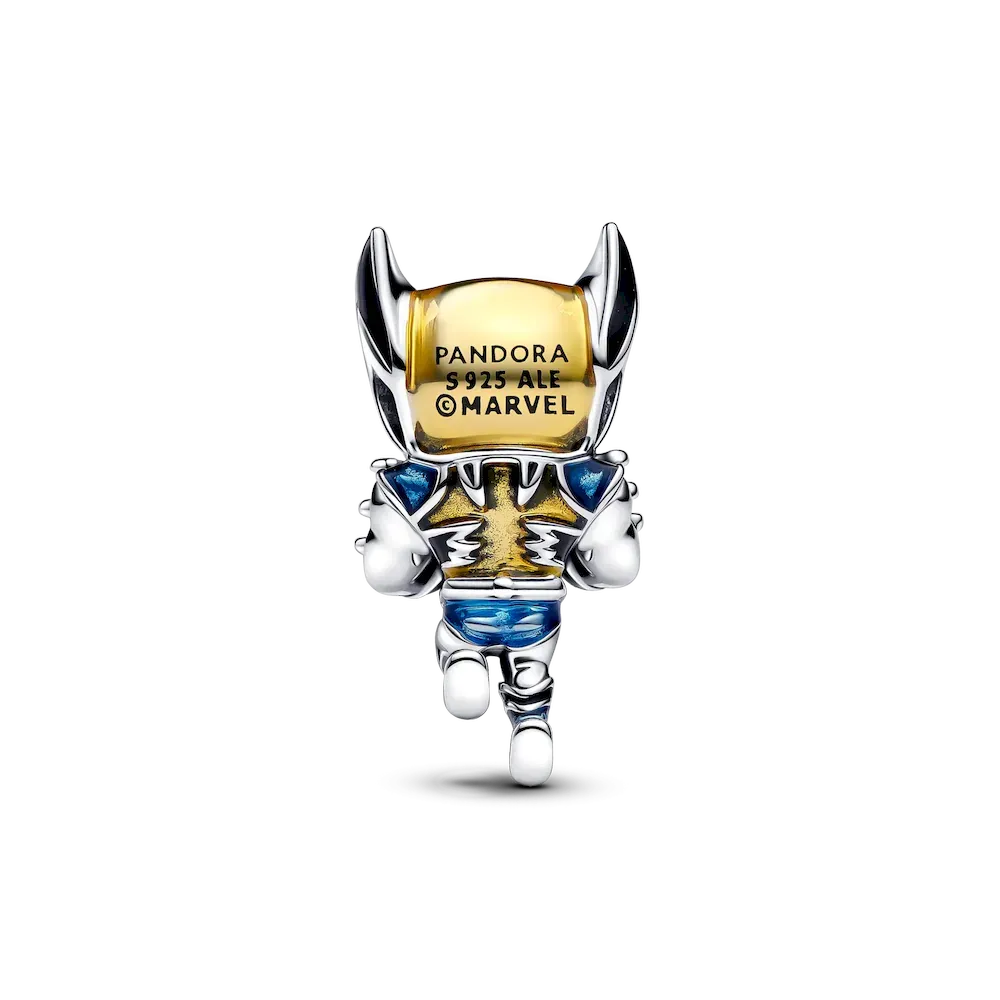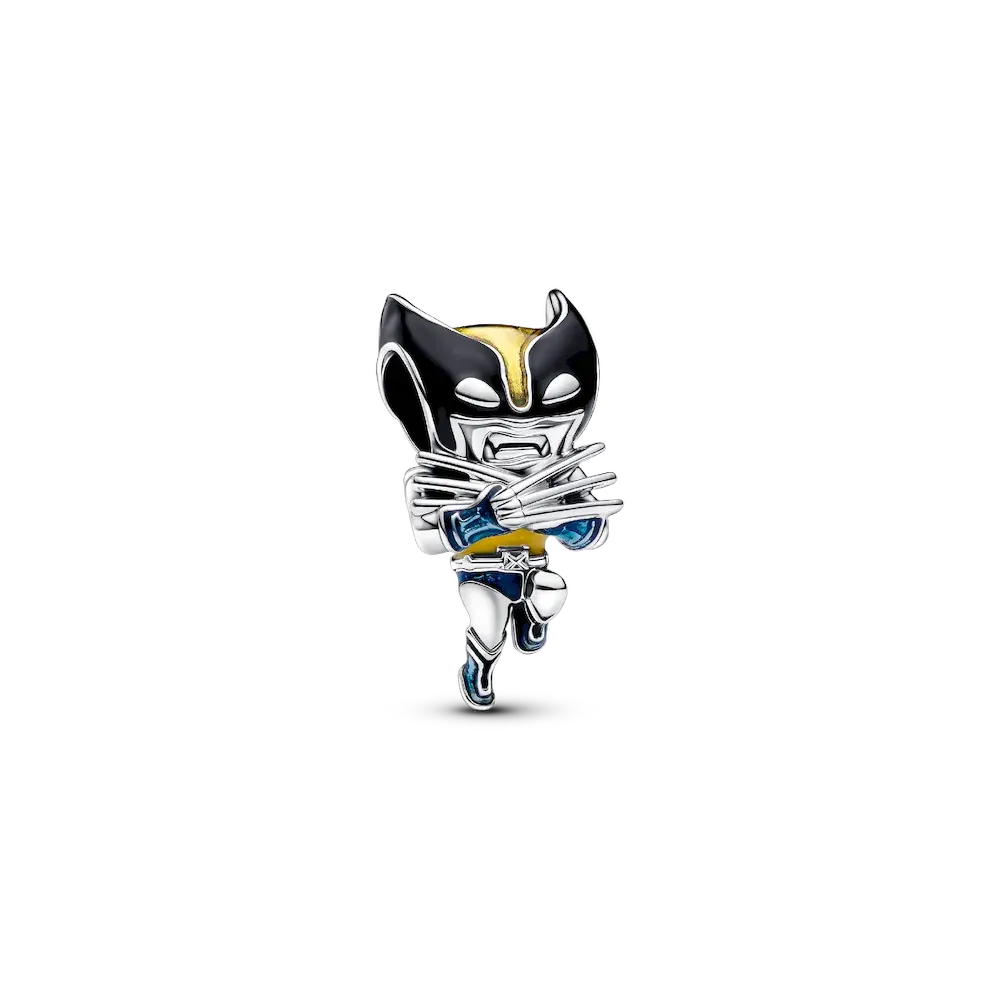 Hand-finished in sterling silver, this legendary bracelet features the iconic snake chain pattern and a Marvel logo brick clasp detailed with slightly raised letters in white enamel. Also in sterling silver, the Marvel Deadpool Charm showcases Deadpool in basse-taille enamel technique. The woven pattern beneath his fully-equipped body suit adds depth, and he’s captured mid-action, forming a peace sign with one hand. Deadpool fans will appreciate this detailed charm that brings the Merc with a Mouth to life. Crafted in sterling silver, the Marvel Wolverine Charm depicts Wolverine mid-action. His arms and iconic long claws are crossed over his chest, with intricate raised detailing and metallic-effect enamel touches. This charm is perfect for fans of Marvel’s fierce and iconic character, Wolverine.