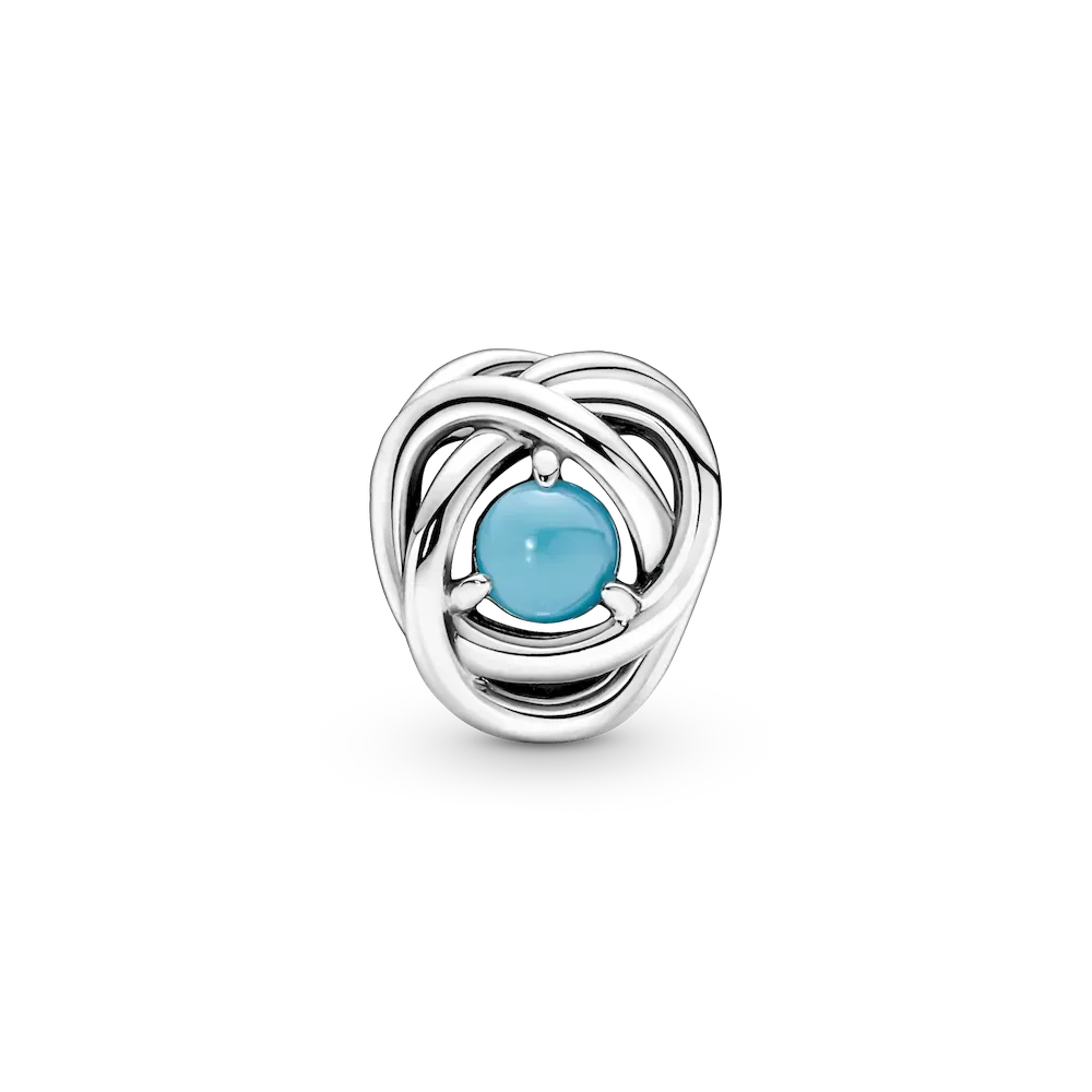 Icy winter blues sparkle in this dazzling necklace set celebrating December birthdays. It includes a Classic Cable Chain Necklace, a snake-chain patterned Pandora Moments Small O Pendant, and the Turquoise Blue Eternity Circle Charm with openwork infinity braiding design and capri blue man-made crystal in the center.