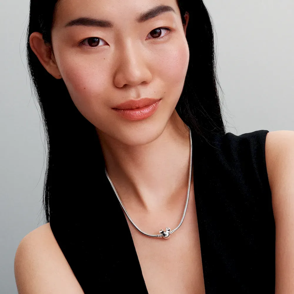 Disney’s Mickey Mouse is loved for his joyful character and heart of gold. This time, that heart of gold takes shape in sterling silver, as the clasp of a Disney x Pandora snake chain necklace design. The necklace can be styled with up to 35 charms, so you can create your very own Disney-inspired look with your favourite characters.