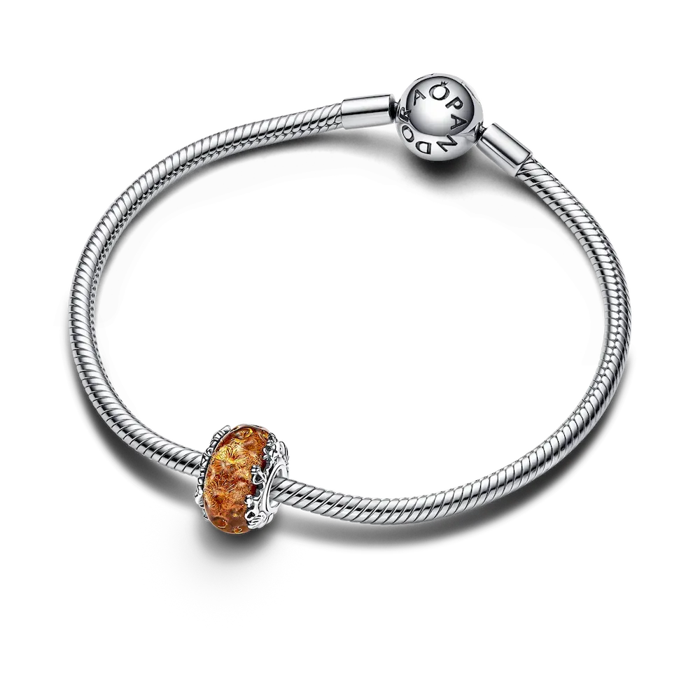 Celebrate the life’s natural cycles with the Disney The Lion King Murano Glass Charm. Crafted of sterling silver, this charm features two kinds of Murano glass to create a rich, glittery effect. One side of the charm’s core features animals in a life cycle theme, while the other features Disney’s Simba, Timon and Pumbaa. Be inspired by the film’s iconic characters and profound message every time you wear this charm.