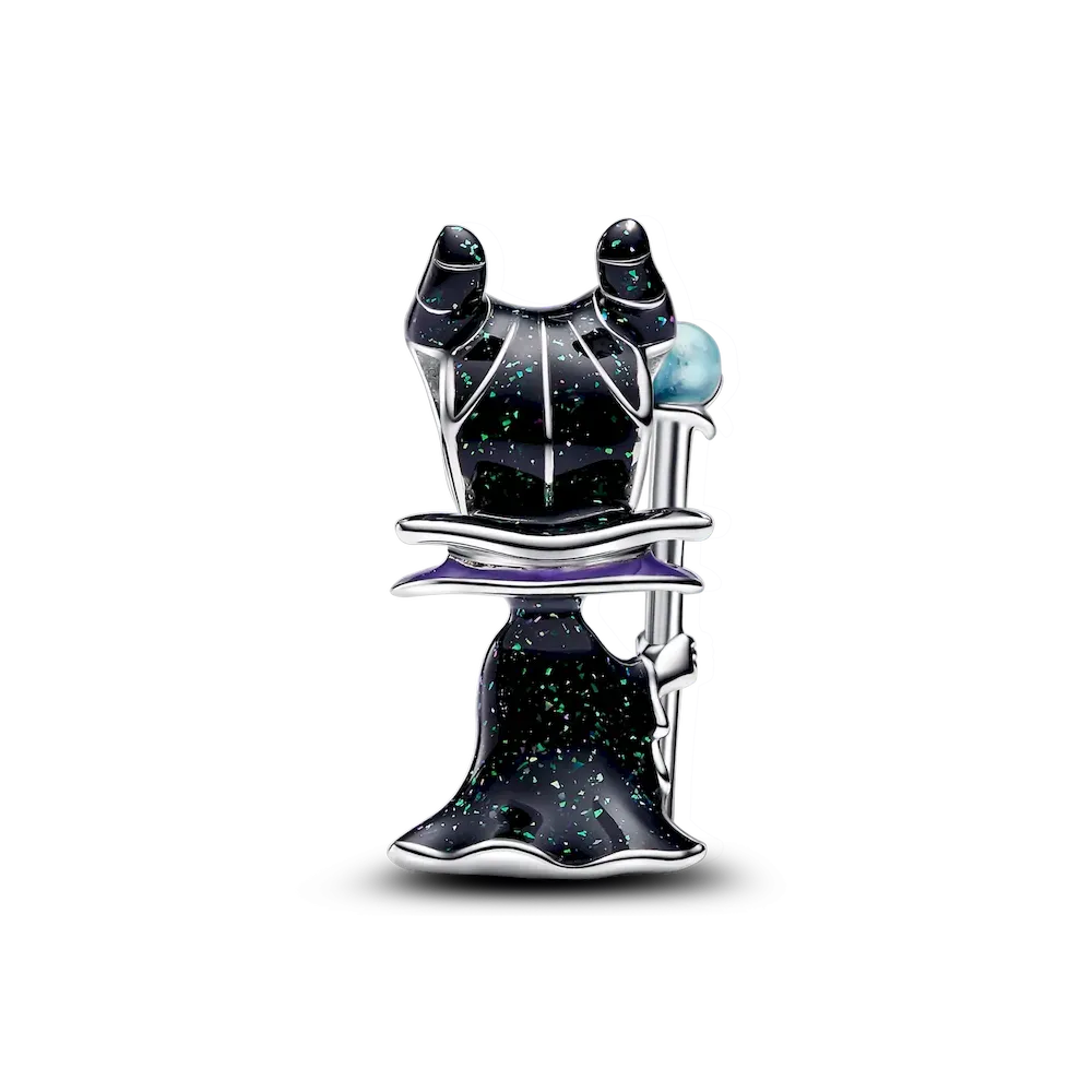 Fall under the spell of Disney’s Maleficent. A complex blend of darkness, vulnerability and strength, Maleficent rules over her domain with dark magic. Our new charm depicts her in sterling silver with hand-applied enamel on her cape and glow-in-the-dark sceptre. Embrace the shadows with pieces inspired by your favorite Disney Villains.