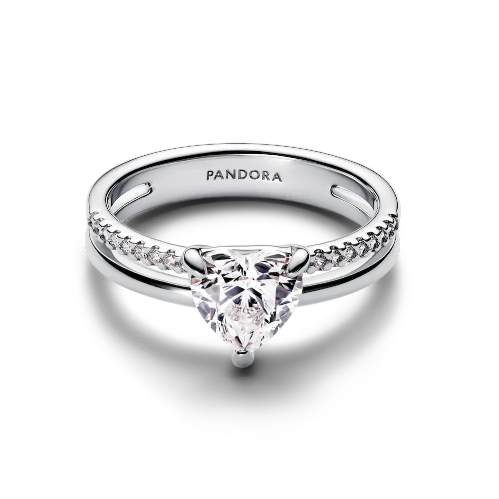 Celebrate love every day with our Double Band Heart Ring. Crafted from sterling silver, the ring features a heart-shaped clear cubic zirconia, set in the center of a polished band and a pavé band, which is adorned with 18 bead-set cubic zirconia. The bands are held together by the heart, creating a meaningful ring that celebrates the bonds that connect us.