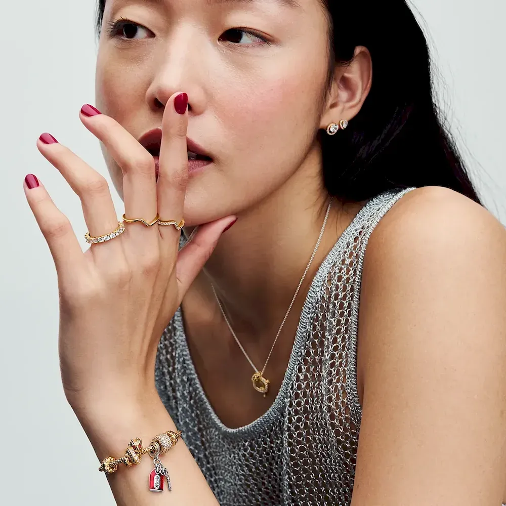 Invite good fortune in the coming year with the Two-tone Dragon Charm. 2024 is the Year of the Dragon – the 5th animal in the Chinese zodiac, this mythical creature represents good fortune, strength, power, wisdom and health. This 14k gold-plated charm features an intricately detailed dragon with a row of pavé along one side of its body and scale details on the other. Sparkling red pear-shaped stones bring the dragon’s eyes to life, and its body is curled to wrap around your bracelet or charm holder, creating a sense of movement. Wear this charm to invite the qualities of the dragon into your year ahead, or gift it to a loved one who was born in the Year of the Dragon.
