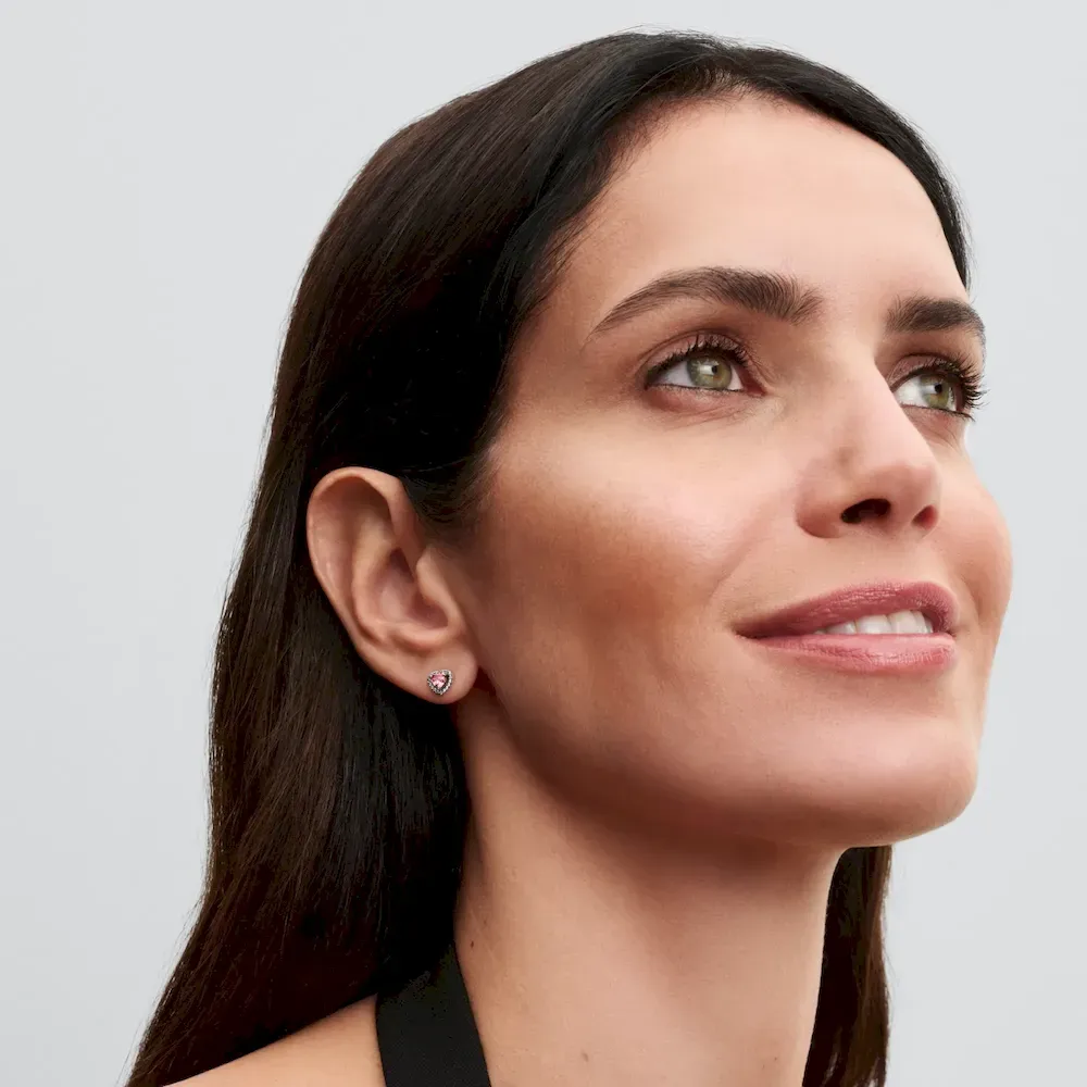 Embrace a dash of cool-toned color with the Elevated Pink Heart Stud Earrings. Made of sterling silver, these earrings feature raised heart-shaped pink stones surrounded by sparkling pavé. Inspired by feelings of love and gratitude, this ring embodies all the warm and shining feelings that come from the heart. Gift it to someone you hold close, or add it to your own collection for days when you need a pop of pink –or a reminder to share the love.